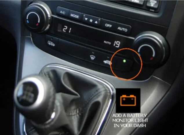 Only two wires are needed to connect. (Connect after ignition)Uses multi-color 3mm LED. When the light is green, it means there is no problem with the battery. When the light is red, it means the battery voltage is low.