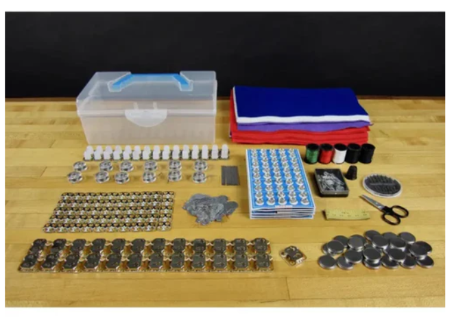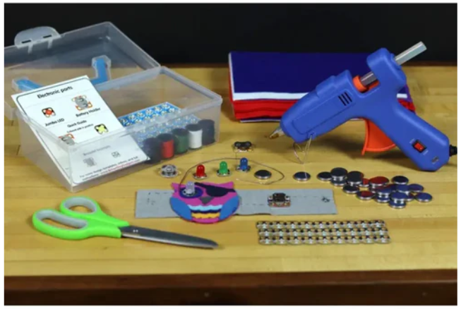Designed for individual or small group use, the Sewing Circuits Standard Kit contains enough materials for at least two projects. This Sewing Circuits Kit makes it very easy to create wearable electronics and flexible circuits. Using conductive thread and our special Crazy Circuits parts, you can easily sew circuits onto any fabric.