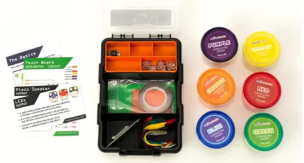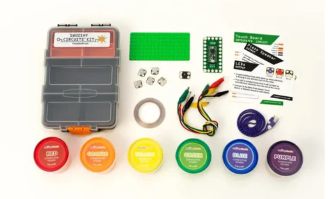 Crazy Circuits (including Squishy Circuits) teach topics such as circuits, programming, logic, design, sewing techniques, art and design. Users can transform the included Squishy Circuits fabric into interactive programming creations using the included invention board. You can write your own programs or use one of the many online guides or tutorials. You can create your own fabrics, light and sound systems, or even game controllers! Crazy Circuit parts are compatible with LEGO and similar building systems.