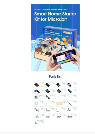 • ACEBOTT Smart Home IoT Starter Kit with micro:bit is an educational tool designed to introduce children to the world of smart technology and programming. The kit encourages hands-on learning and innovation, allowing young tech enthusiasts to explore and understand the principles of electronic hardware and programming through hands-on activities.