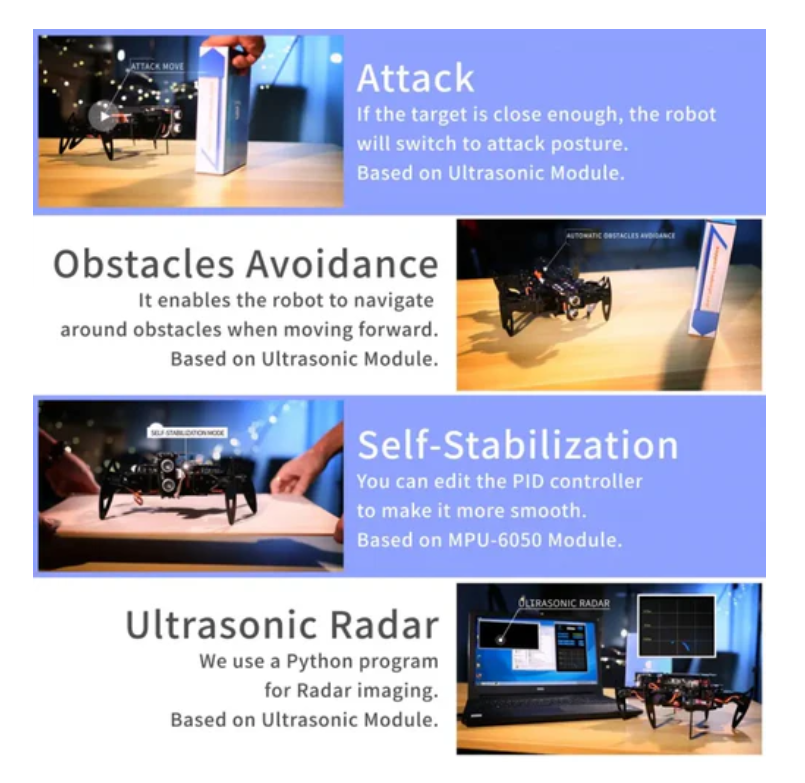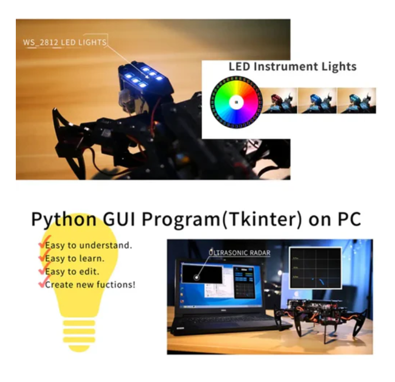STEAM Educational Robot: A complete bionic hexapod spider robot kit based on Arduino. It can be remotely controlled (based on WiFi) via an Android APP or a Python GUI APP on a PC. Easy to Assemble and Code: The PDF manual with illustrations teaches you to build the hexapod robot step by step. Note: Powered by 2x18650 batteries (not included).