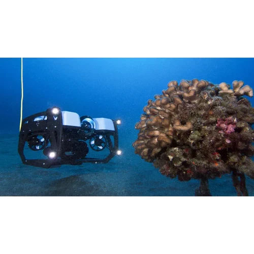 BlueROV2 (Acrylic - 100m) equipped with a high-resolution, wide-angle, low-light camera. Dimmable lamps support up to 6,000lm. The patented T2 thruster allows for precise movement. The acrylic housing allows for operating distances of up to 100 meters. Modular frame design, expandable. BlueROV2 (Acrylic - 100 metres) is an affordable, high-performance underwater remotely operated robot (ROV) known for its flexibility and scalability. It has 6 and 8 thruster configurations, supports a variety of accessories, and runs open-source software, making it a popular choice for underwater drones.The BlueROV2 needs to be partially assembled and takes about 6-8 hours to complete. This assembly process gives the user a comprehensive view of the system components, making future upgrades and improvements easier.The BlueROV2 is equipped with a high-resolution, wide-angle, low-light camera that is mounted on a tilt mechanism that allows the pilot to control the tilt of the camera for the best viewing angle. The ROV can be configured with 2 or 4 dimmable lumen lamps to provide up to 6,000lm of illumination for underwater environments.The ROV features a patented T2 thruster in a vectored configuration that provides a high thrust-to-weight ratio and precise movement in any direction. The standard 6 thruster setup can be extended to 8 thrusters with the Heavy Duty Configuration Modification Kit, providing full 6 DOF control and enhanced stability. Adjustable gain levels give you precise control and high power at low speeds to harness current and haul heavy loads.The BlueROV2 can be configured with an acrylic plastic or anodised aluminium housing. The acrylic casing can withstand depths of up to 100 m (328 ft), while the aluminium casing can withstand depths of up to 300 m (984 ft). The ROV is made of high-quality components and comes with a vacuum test pump to ensure a good seal before each dive.Designed with a modular frame, the BlueROV2 is rugged and scalable, allowing a range of accessories to be mounted, including ROV clamps and scanning sonars. Payload slides allow the frame to be extended to accommodate larger payloads or to accommodate scientific instruments, additional battery enclosures, and more. Users can modify the standard framework to create customised underwater robots for specific applications.The BlueROV2 comes with a Navigator flight controller and BlueOS. The Navigator is a dedicated controller for the ROV and is equipped with on-board sensors such as an inertial measurement unit (IMU), magnetometer, and leakage sensor. It has 16 outputs for connecting thrusters, lights, grippers, and other accessories, as well as multiple communication ports for sensors and sonar. Paired with a Raspberry Pi 4 computer, Navigator runs BlueOS to manage vehicle controls, cameras, and tethering connections, and facilitate software updates.The pilot controls the ROV from a laptop and gamepad controller.