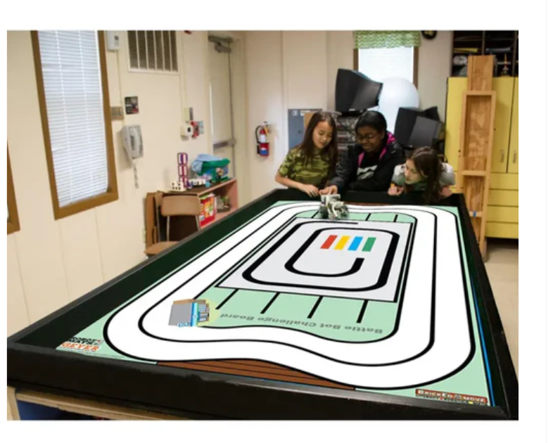 Using this mat, students can identify colors, follow routes, compete, and even engage in sumo style robot battles.