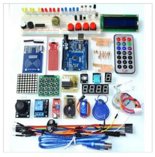 It also integrates a sound detection module, a temperature and humidity module, and a water level detection module to enable users to engage in environmental monitoring projects. In addition, the kit includes a 4x4 keypad module and an 8x8 dot matrix module for input and display. This comprehensive kit is ideal for beginners and hobbyists who want to gain hands-on experience in electronics and programming.