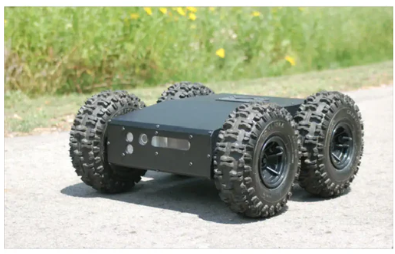 The Dr. Robot Jaguar 4x4 mobile platform is designed for indoor and outdoor operations, requiring higher ground clearance and faster maneuverability. The Jaguar 4x4 wheeled platform is the wheeled version of the Jaguar Lite platform. It is driven by four powerful (80W) motors, one for each wheel. It is sturdy, durable, lightweight (<20Kg), fast (up to 15km/hr), high ground clearance (88mm), compact, weather resistant, and waterproof. It is designed specifically for rugged terrain, capable of crossing vertical steps up to 155mm and climbing low stairs (up to 110mm steps).