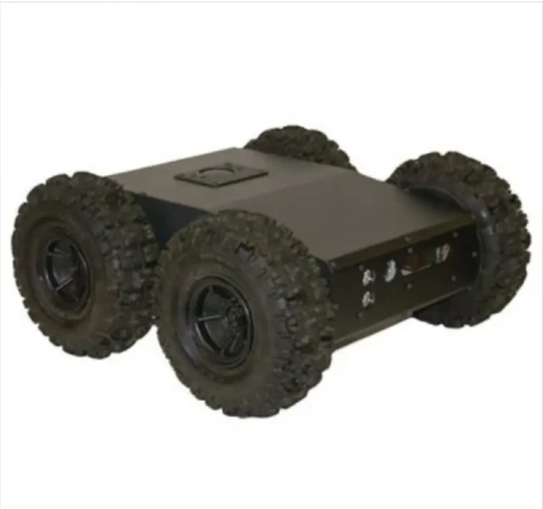 The Dr. Robot Jaguar 4x4 mobile platform (chassis and motor) is designed for indoor and outdoor operations that require higher ground clearance and faster maneuverability. The Jaguar 4x4 wheeled platform is equipped with all the functions of the Dr. Robot Jaguar 4x4 mobile platform (excluding electronic components). The Jaguar 4x4 wheeled chassis is driven by four powerful (80W) motors (included), one per wheel.