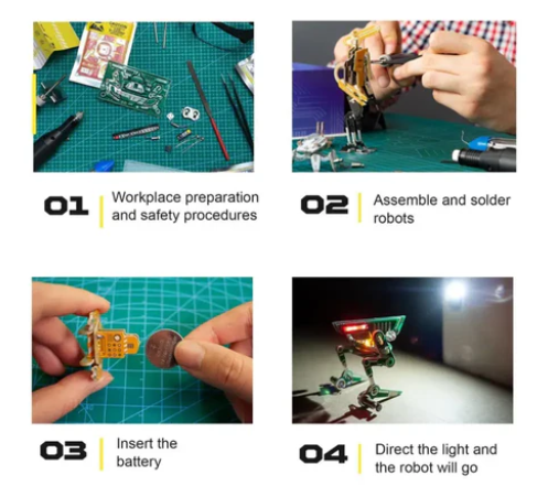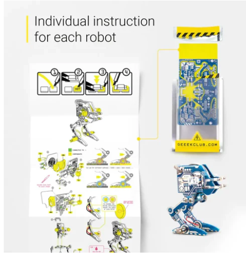 • Geeek Club Smart Nanobot Soldering Kit + Tool Kit provides you with motors, sensors and robot parts to make your own micro smart patrol robot army for your fun or to display on a table or shelf.