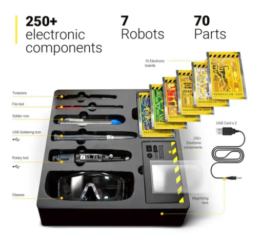 • Provides 7 robots, 70 parts and over 250 electronic components