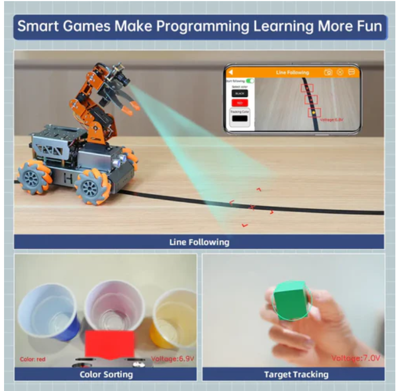 The robotic arm has rich tutorials and open-source Python code, which can perform operations such as color recognition, picking, and classification.