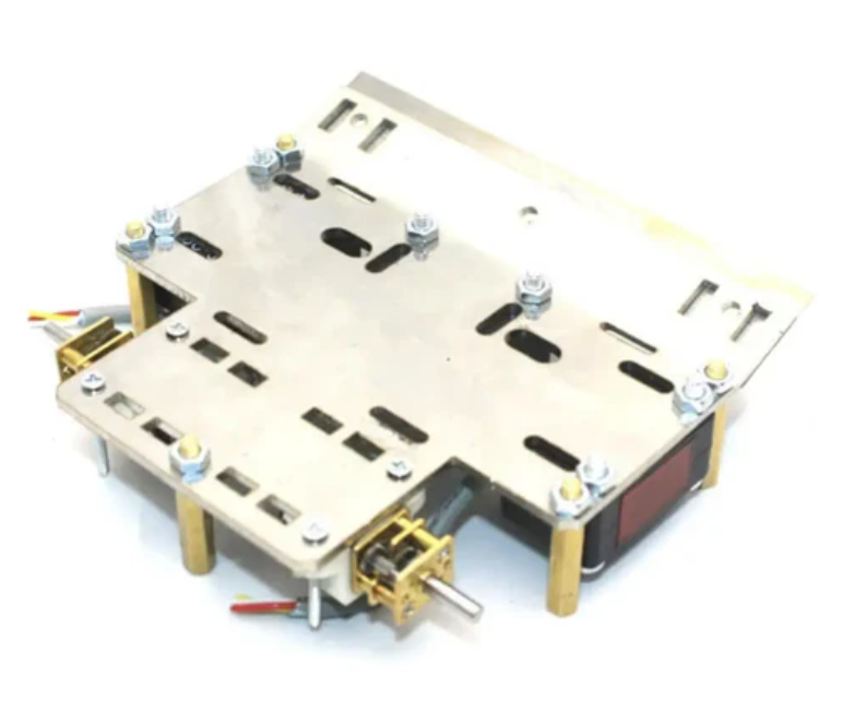 The JSumo M1 mini sumo robot chassis (without electronic devices/motors) adopts a practical design. A sturdy structure can protect your robot. The bottom plate is made of 2mm stainless steel and can be bent 20 degrees to accommodate blades. The upper board is very suitable for fixing sensors and installing robot controller boards.