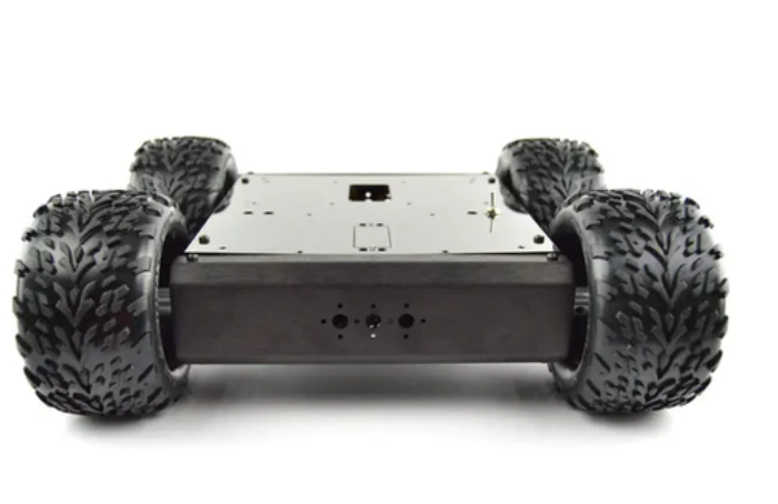 By using Traxxas Stampede Tera 4.75 '' RC truck tires (RB-Lyn-22), the Lynxmotion A4WD1 aluminum robot kit has excellent traction. There is enough space inside to accommodate other electronic devices. You can add optional accessories such as Lynx motion translation and tilt kit/aluminum or Lynx motion 4WD1 robot gripper kit. By adding dual motor controllers, microcontrollers (such as the BASICX-24p-u microcontroller), and sensors, autonomous operation can be achieved.