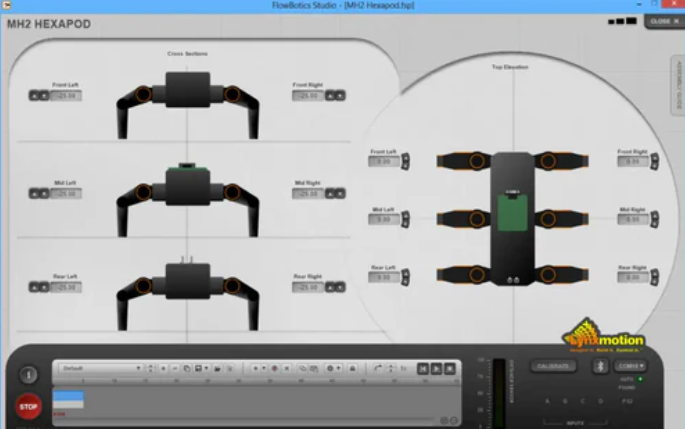 The Lynx Mini Hex hexapod robot kit MH2F (FlowBotics Studio) is a multifunctional 12DoF hexapod walking robot. This kit includes the complete version of FlowBotics Studio, including SSC-32, serial to Bluetooth board, and Bluetooth module, which can be remotely controlled from a computer. This method transfers advanced computing to computers. FlowBotics Studio includes an MH2 demonstration project with pre written walking algorithms. The hexapod robot is designed around simple mechanical legs, with all metal brackets. This leg design minimizes the number of parts required to make two degrees of freedom (DOF) legs, allowing the robot to operate like a tank. Supports forward, reverse, and stationary turning. The robot's legs use standard sized Hitec servers. The combination kit includes everything needed to make a functional robot, except for the battery and optional PS2 controller. Mechanical structure hexapod