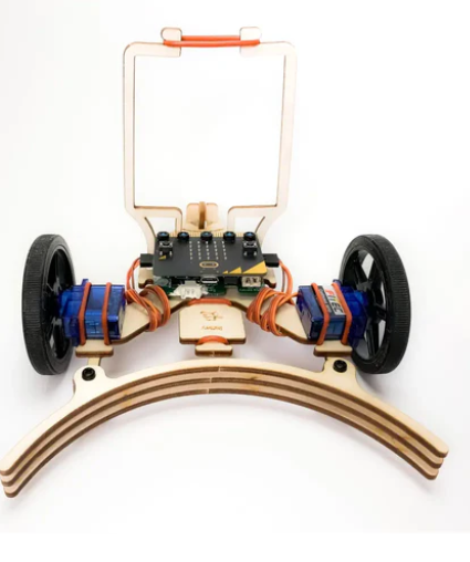 • The MakeKit Wheel:Bit and micro:bit is a versatile three-wheeled vehicle that can transform into a drawing machine or a soccer-playing robot. It is able to operate autonomously or be remotely controlled by another micro:bit. The vehicle can be creatively transformed into a dinosaur or a custom rod, offering a unique blend of craft and technology.