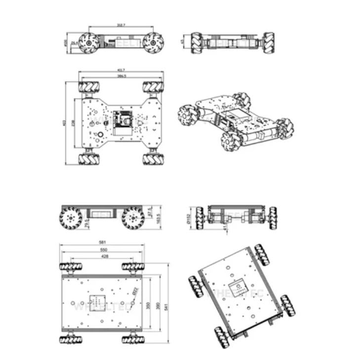 Mecabot X is equipped with a built-in ROS controller LiDAR、 A depth camera, STM32 motor/power/IMU, and a metal chassis with 4 Mecanum wheels and independent suspension system.