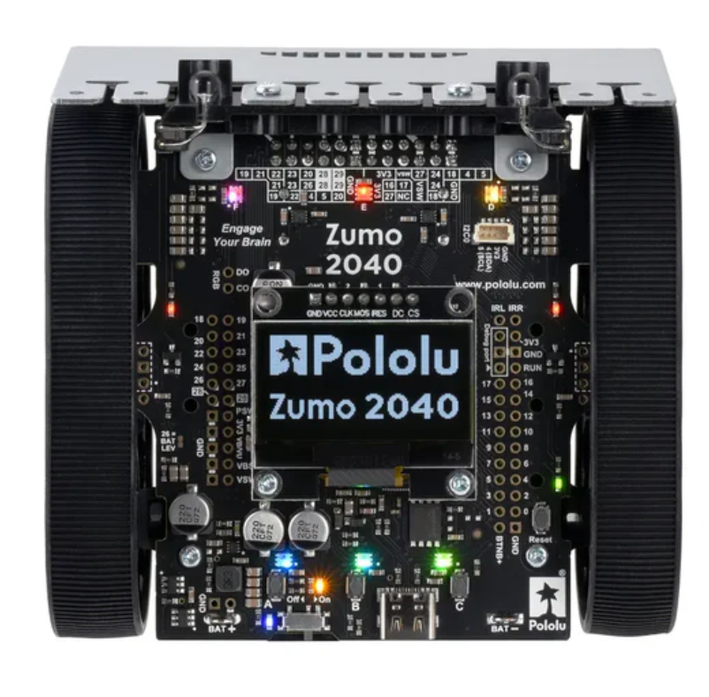 The Pololu Zumo 2040 assembly robot is equipped with a 50:1 HP motor and is a multifunctional tracked robot designed around the Raspberry Pi RP2040 MCU. This model is equipped with two 50:1 HP miniature metal gear motors, integrated dual motor drivers, orthogonal encoders, line sensors, and side and front proximity sensors for object detection.