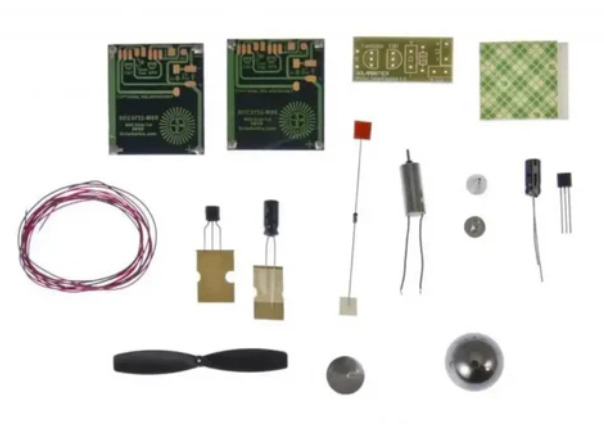 The Solarbotics Paris Flyer CarouSol Soldering Kit combines the golden age of airships with transoceanic steam-powered travel. It borrows design elements from the golden age of air travel. The laser-cut MDF boards are easily bonded together to create a truly mobile solar-powered vehicle.