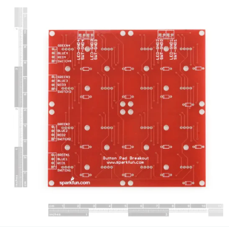 • The Sparkfun Button Pad 4x4 - Breakout PCB is a simple breakout board designed for a 4x4 silicone button pad. Each LED and button is accessible via side connectors, which are soldered on the back of the PCB. The board now includes footprints for the diodes (specifically the 1N4148 through-hole diode) to facilitate easier isolation and decoding of switches.