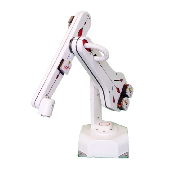 The ST Robotics R12 5-axis articulated robot arm is a complete, self-contained, five-joint vertical robot arm system designed as a cost-effective solution for benchtop automation. It has a reach of 500mm and a payload of 500g. The gripper end has a mounting plate for a low-cost gripper, vacuum picker, or your own equipment.