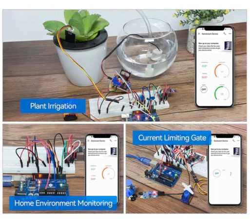 The SunFounder 3-in-1 Arduino Uno Starter Kit (Intermediate) is the most comprehensive kit for learning Arduino, smart cars, and the Internet of Things. This 3-in-1 kit contains 87 projects and 192 projects. (Includes ESP8266 and a controller board compatible with Arduino UNO.)