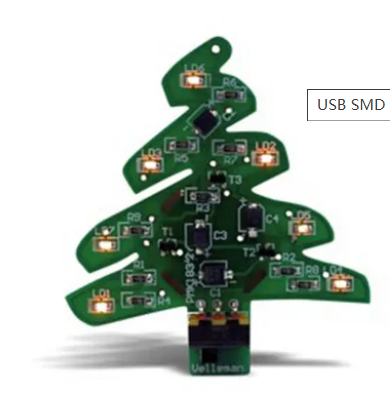 • The USB SMD X-MAS Tree Soldering Kit is the perfect SMD kit for the Christmas holidays. Easy to install and an ideal introduction to SMD technology. The tree can be powered by either a PC or a battery.