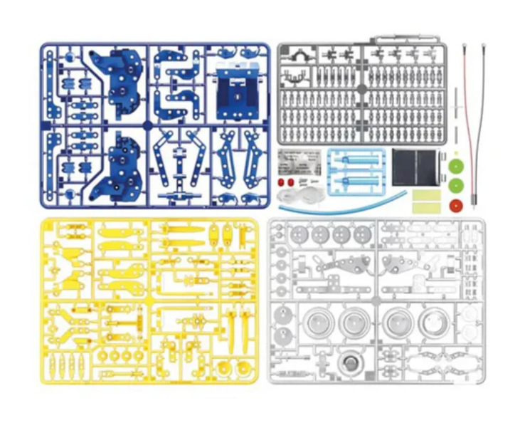 The Velleman 12 in 1 solar hydraulic building kit helps children understand the benefits of alternative energy sources. This robot kit is powered by solar and hydro energy and does not require batteries.