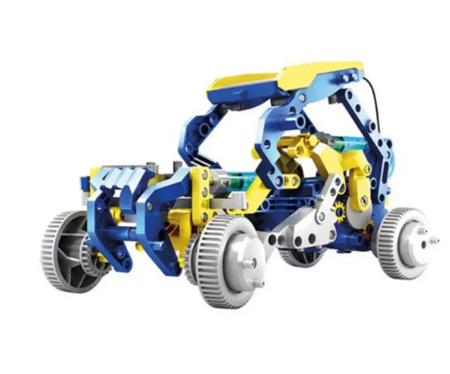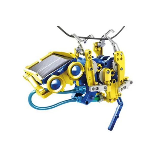 Velleman 12-in-1 Solar Hydraulic Structure Kit teaches kids the benefits of alternative energy. The robot kit is powered by solar and water, and requires no battery.