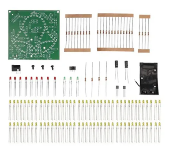 • The 83 LED Animation Bell Soldering Kit is powered by a 9~12V DC power supply. If you use an external power supply, you don't need to remove the battery. It also includes an on/off switch.