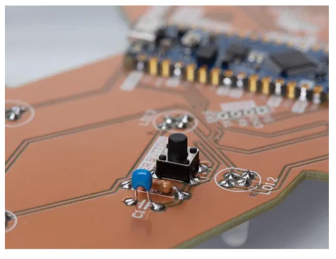 • Once soldering is complete, you can program the LED colors and light effects on the Arduino Nano Every. The Arduino comes pre-programmed with some basic LED effects, so you just need to power it with the included adapter and the kit will work.