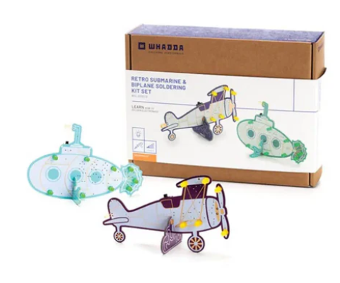 • The Whadda Vintage Submarine and Biplane Soldering Kit (WSL22SET2) is an educational DIY project that requires soldering. Soldering is a technique used to connect electronic components. Soldering this kit is easy and fun, and you will learn more about electronics in the process. When you are finished, the LEDs on the kit will light up and you will have a neat little tool.