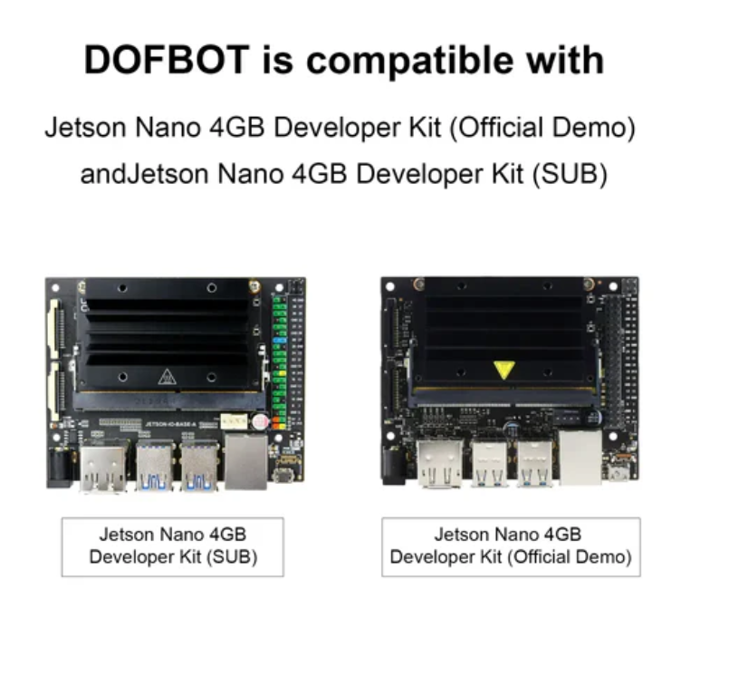 Yahboom 6-degree-of-freedom AI visual robotic arm with ROS and Python programming, suitable for Jetson NANO 4GB (including Jetson NANO SUB board). The English manual is the perfect partner for AI beginners, programming enthusiasts, and Jetson nano fans. It is based on the Jetson NANO 4GB design and includes 6 high-quality servers, a high-definition camera, and a multifunctional expansion board. The entire body is made of green alumina alloy, which is both beautiful and durable. Through the ROS robot system, the motion control of serial bus servo has been simplified. Using open-source CV as an image processing library and Python 3 programming language to create a series of AI visual games, such as color tracking, color interaction, garbage classification, gesture recognition, face tracking, etc. It can be controlled through Android/iOS mobile apps, PC computers, and game controllers. In addition, tutorials are provided for reference.