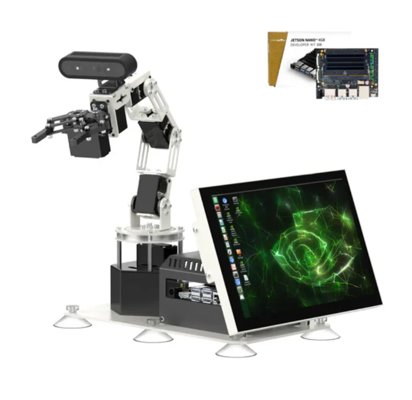DOFBOT PRO is compatible with Jetson NANO 4GB/Jetson Orin NANO/Jetson Orin NX boards. Machine learning models are trained using Jetson's GPU, programmed in Python using a deep learning framework, and jointly developed with MediaPipe to achieve AI creative projects such as object image recognition, gesture control, and human posture recognition.
