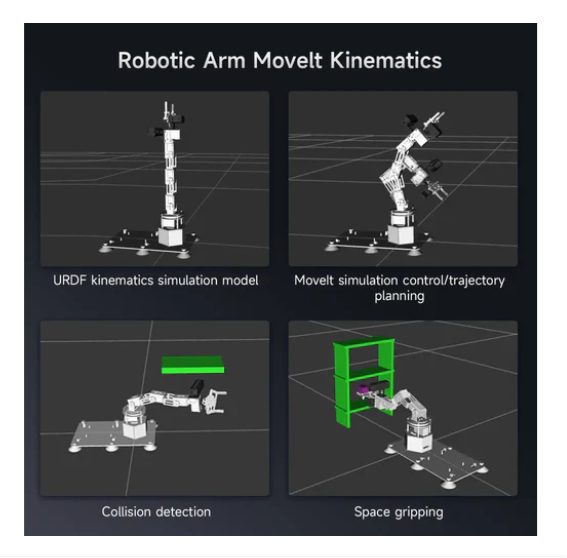 The entire robotic arm body is made of high-quality aluminum alloy, with six flexible degrees of freedom. Each joint uses high-precision servos, which have faster response speed and can perform smooth multi-axis movement.