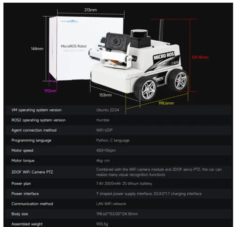 Using ROS2 Humble operating system and Python 3 programming, and providing a large number of courses and source code for users to refer to.