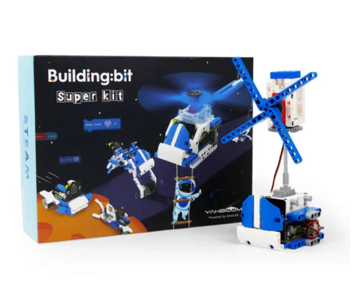 The Super: bit expansion board is designed specifically for BBC Micro: bit and has been carefully crafted to perfectly integrate with building blocks, allowing users to build any shape and drive building block servos, motors, RGB lights, and other devices. The building blocks of this kit are mainly in blue and white colors, with a strong sense of technology, and can be assembled into countless models. The manual contains assembly steps for 16 models and basic programming guidance.